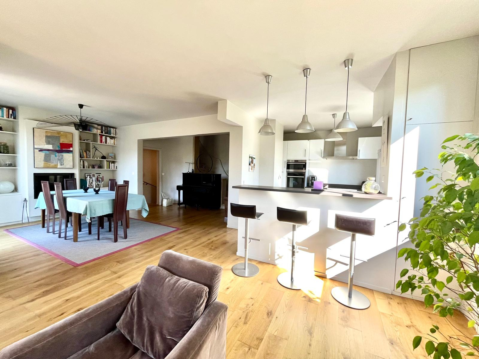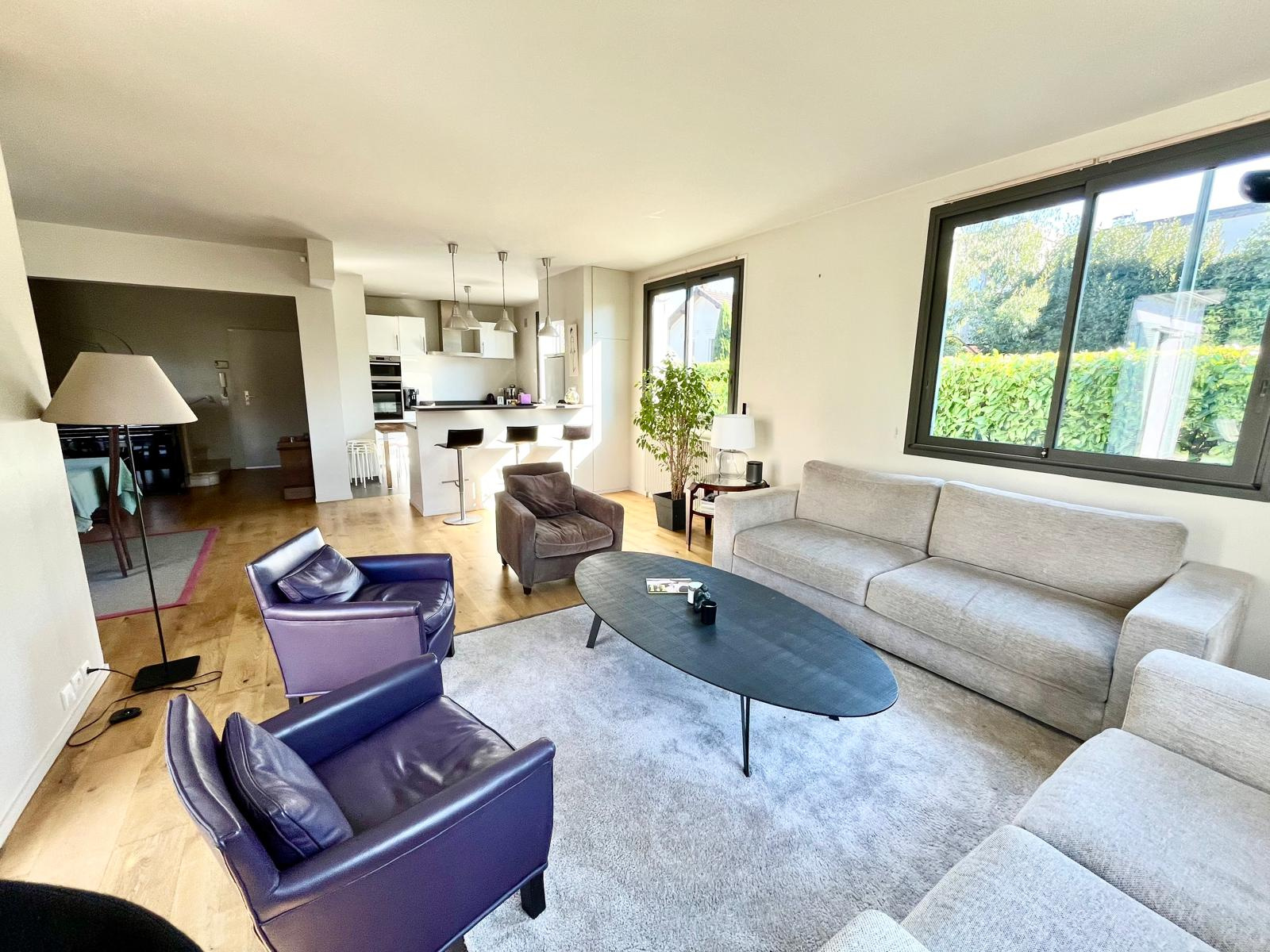 Jean-Michel Le Galle vous présente cette maison familiale lumineuse et spacieuse à Saint-Cloud, nichée dans un quartier calme et résidentiel, à seulement 15 minutes à pied de la gare principale. Cette propriété rare combine l’élégance d’une maison familiale, de beaux volumes, une cheminée dans la salle à manger, un jardin exposé sud, et un garage double, idéale pour une vie de famille confortable. Le rez-de-jardin accueille une entrée spacieuse qui dessert un salon et une salle à manger lumineuse, agrémentée d’une cheminée chaleureuse, parfaite pour créer une atmosphère conviviale et raffinée. Les réceptions s’ouvrent directement sur la terrasse et le jardin orienté sud, offrant un cadre extérieur idéal pour les repas en famille ou les moments de détente. La cuisine ouverte sur le séjour est fonctionnelle et moderne, pensée pour les moments de partage. Ce niveau comprend également : une chambre avec dressing et salle de douches, un WC avec lave-mains. L’étage supérieur est dédié à l’espace nuit, avec : trois chambres supplémentaires, lumineuses et calmes, une salle de bains, une suite parentale avec salle de bains et douches et dressing intégré, offrant confort et intimité. Le sous-sol de la maison a été pensé pour optimiser la surface : Salle de sport ou de musique, idéale pour les activités familiales, Bureau ou salle de jeux, parfait pour le télétravail ou les enfants, Buanderie, Pièce de rangement / cave, pratique et fonctionnelle. Garage double, pouvant accueillir deux véhicules, Stationnement extérieur supplémentaire, Jardin entièrement exposé sud et sans vis-à-vis, parfait pour profiter du soleil toute la journée. Cette maison bénéficie d’un emplacement privilégié à Saint-Cloud : à 5 minutes à pied des commerces de proximité, proximité des écoles publiques, privées et internationales, à seulement 15 minutes de la gare principale, permettant un accès rapide vers Paris. L’environnement calme et résidentiel offre intimité, sécurité et qualité de vie. Les familles apprécieront la proximité des équipements culturels et sportifs, tout en profitant d’un accès rapide aux principaux axes routiers. Maison familiale à Saint-Cloud, idéale pour une famille recherchant confort, espace, luminosité et calme. Visite confidentielle sur rendez-vous.