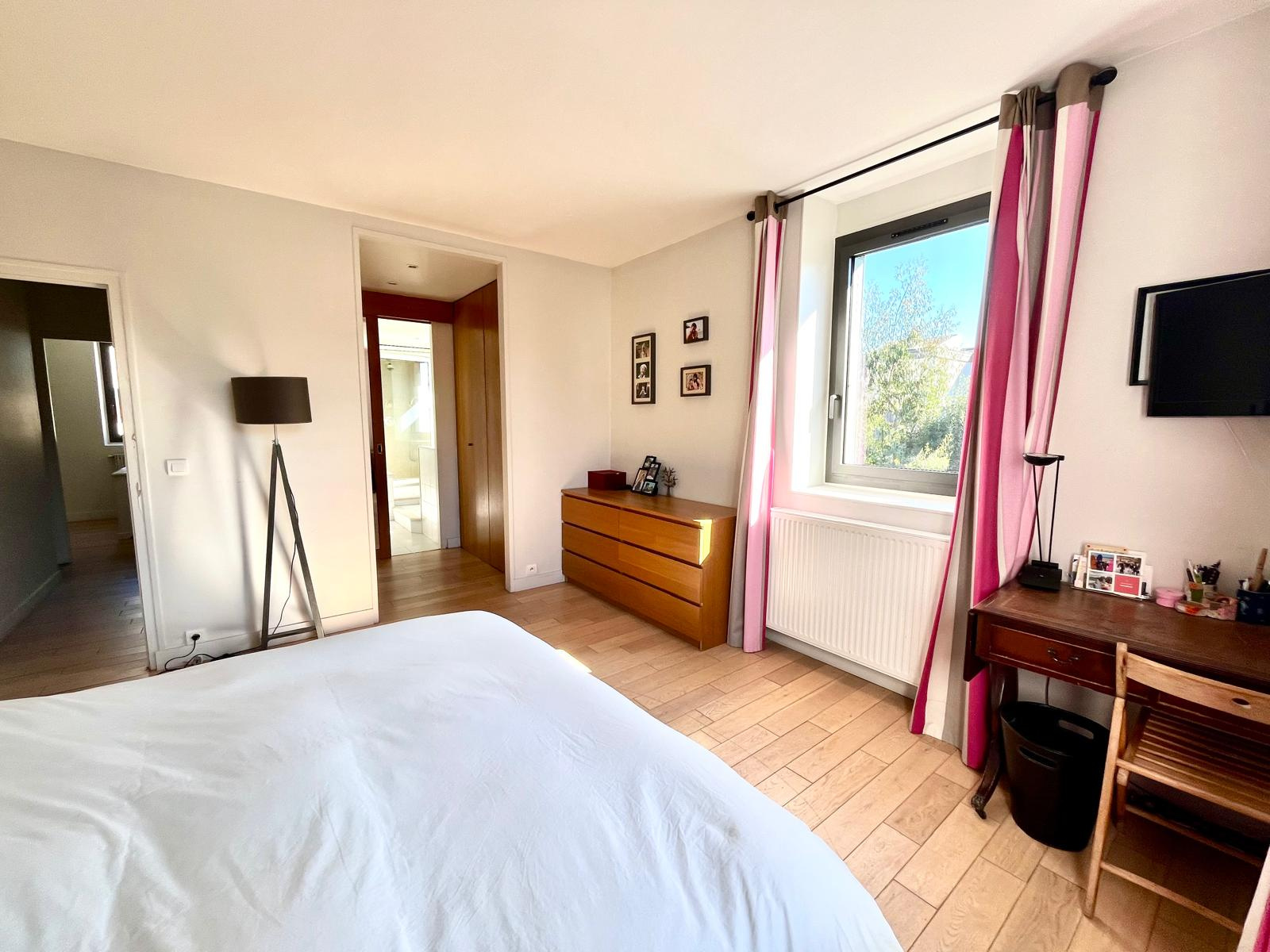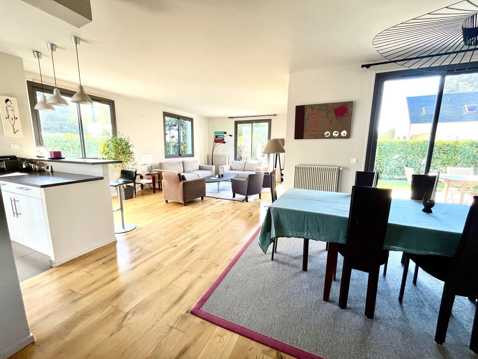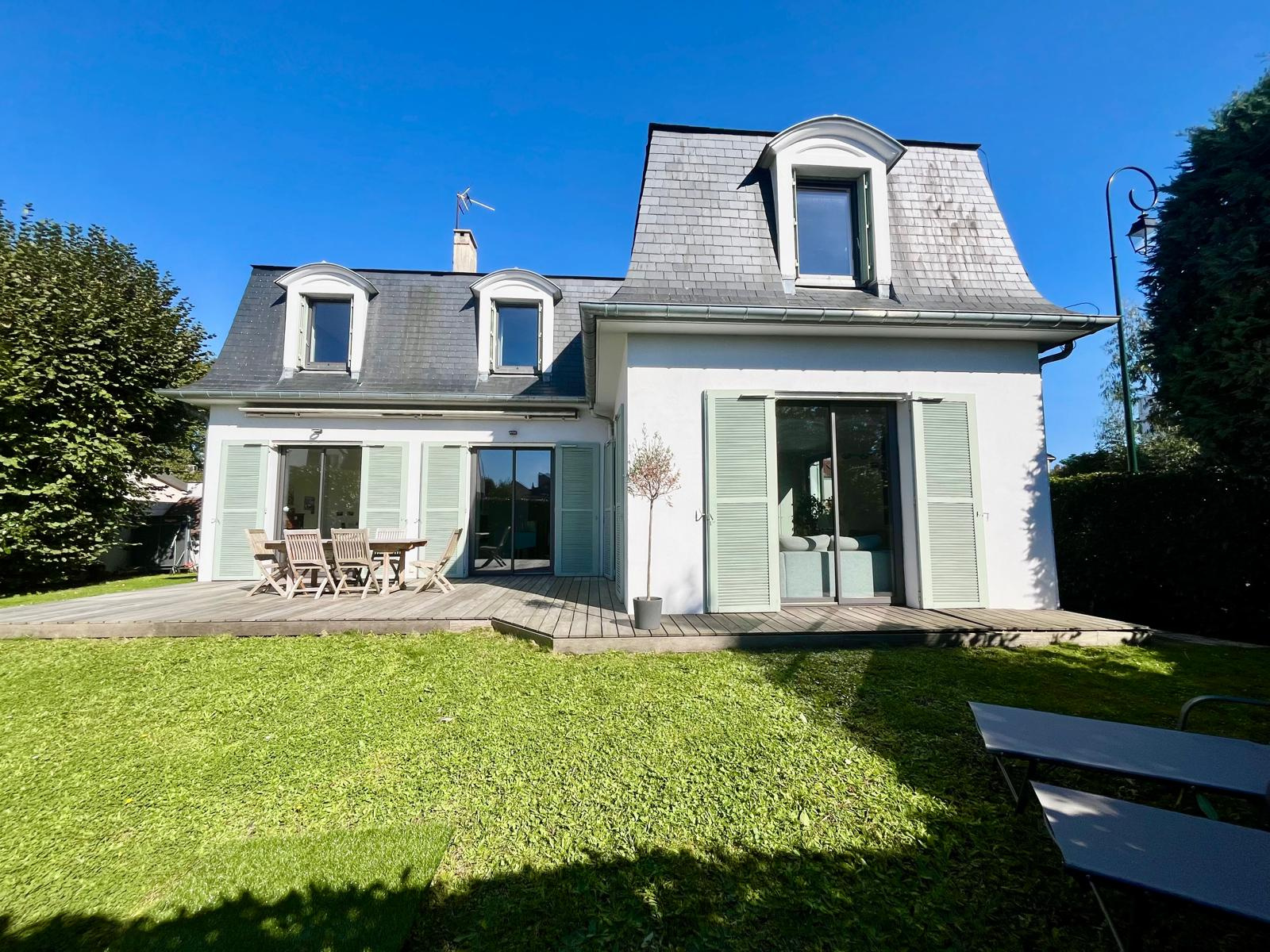 Jean-Michel Le Galle vous présente cette maison familiale lumineuse et spacieuse à Saint-Cloud, nichée dans un quartier calme et résidentiel, à seulement 15 minutes à pied de la gare principale. Cette propriété rare combine l’élégance d’une maison familiale, de beaux volumes, une cheminée dans la salle à manger, un jardin exposé sud, et un garage double, idéale pour une vie de famille confortable. Le rez-de-jardin accueille une entrée spacieuse qui dessert un salon et une salle à manger lumineuse, agrémentée d’une cheminée chaleureuse, parfaite pour créer une atmosphère conviviale et raffinée. Les réceptions s’ouvrent directement sur la terrasse et le jardin orienté sud, offrant un cadre extérieur idéal pour les repas en famille ou les moments de détente. La cuisine ouverte sur le séjour est fonctionnelle et moderne, pensée pour les moments de partage. Ce niveau comprend également : une chambre avec dressing et salle de douches, un WC avec lave-mains. L’étage supérieur est dédié à l’espace nuit, avec : trois chambres supplémentaires, lumineuses et calmes, une salle de bains, une suite parentale avec salle de bains et douches et dressing intégré, offrant confort et intimité. Le sous-sol de la maison a été pensé pour optimiser la surface : Salle de sport ou de musique, idéale pour les activités familiales, Bureau ou salle de jeux, parfait pour le télétravail ou les enfants, Buanderie, Pièce de rangement / cave, pratique et fonctionnelle. Garage double, pouvant accueillir deux véhicules, Stationnement extérieur supplémentaire, Jardin entièrement exposé sud et sans vis-à-vis, parfait pour profiter du soleil toute la journée. Cette maison bénéficie d’un emplacement privilégié à Saint-Cloud : à 5 minutes à pied des commerces de proximité, proximité des écoles publiques, privées et internationales, à seulement 15 minutes de la gare principale, permettant un accès rapide vers Paris. L’environnement calme et résidentiel offre intimité, sécurité et qualité de vie. Les familles apprécieront la proximité des équipements culturels et sportifs, tout en profitant d’un accès rapide aux principaux axes routiers. Maison familiale à Saint-Cloud, idéale pour une famille recherchant confort, espace, luminosité et calme. Visite confidentielle sur rendez-vous.