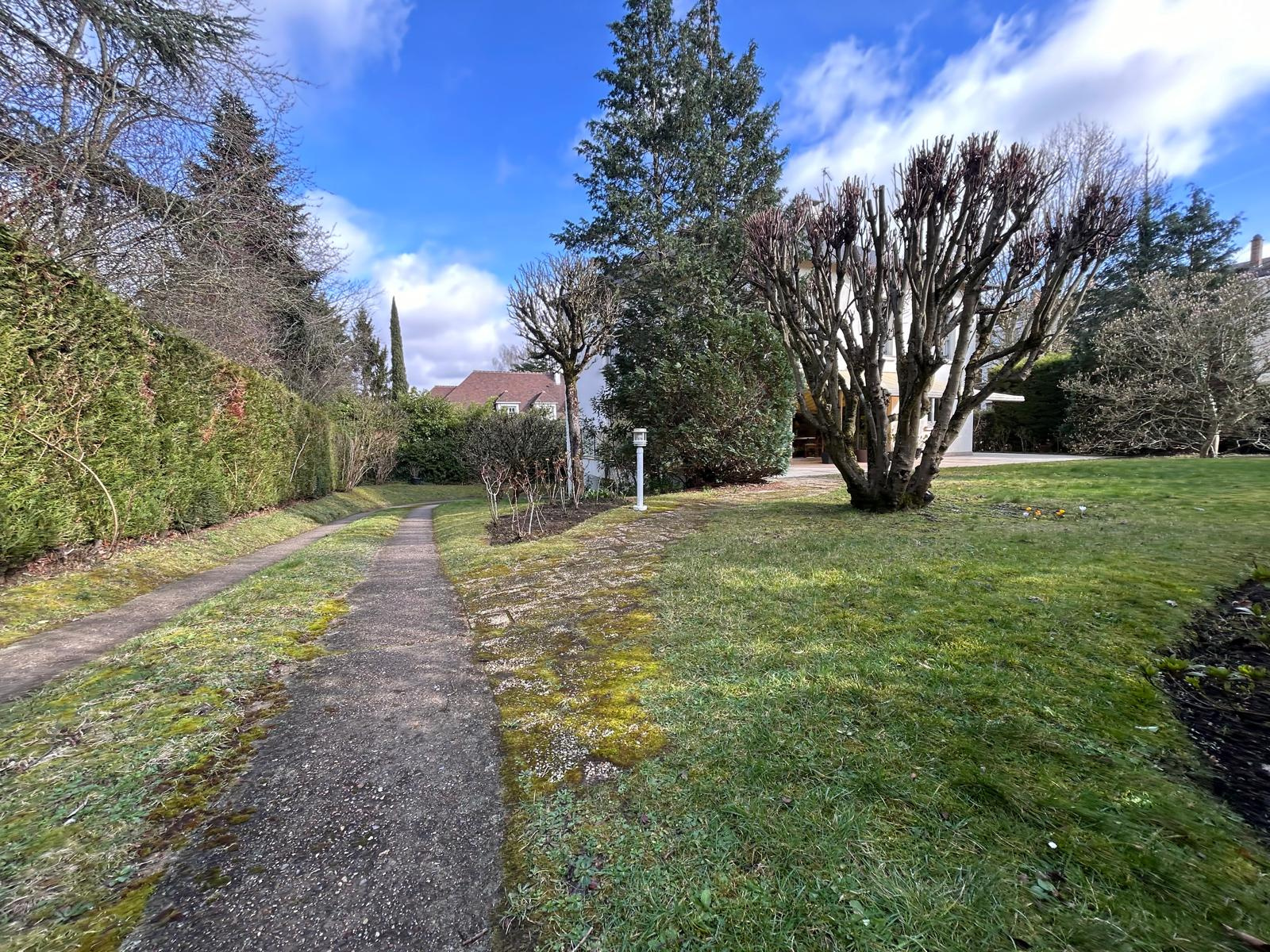 JEAN-MICHEL LE GALLE VOUS PROPOSE: Dans un environnement résidentiel recherché, cette élégante maison familiale de 284 m² habitables s’inscrit au cœur d’un magnifique terrain arboré de plus de 1 000 m², à l’abri des regards. Développée sur trois niveaux, elle offre de superbes volumes, une hauteur sous plafond de 2,80 mètres et une luminosité remarquable grâce à ses larges ouvertures tournées vers le jardin. Au rez-de-jardin, une entrée distribue un bureau pouvant faire office de chambre ou de vestiaire, une salle d’eau avec douche, ainsi qu’une cuisine équipée aux généreuses fenêtres offrant une vue dégagée sur la verdure. La salle à manger, ouverte sur le salon, bénéficie d’un accès direct à la terrasse. Le vaste salon avec cheminée, également prolongé par la terrasse, constitue un espace de réception particulièrement agréable. Il peut aisément être repensé afin d’y intégrer une chambre supplémentaire si nécessaire. De nombreux rangements complètent ce niveau. À l’étage, cinq grandes chambres profitent toutes d’espaces de rangement. Deux salles de bains, dont une avec WC, une salle de douche ainsi qu’un WC indépendant assurent un confort optimal pour une vie familiale harmonieuse. En rez-de-jardin, une très grande pièce avec fenêtres et accès direct vers l’extérieur offre de multiples possibilités d’aménagement (salle de jeux, espace indépendant, bureau, salle de sport…). Une vaste buanderie pouvant être aménagée en cuisine, une cave, un WC et un garage pouvant accueillir trois véhicules complètent ce niveau. La maison est équipée de volets électriques, d’un large store couvrant la terrasse et d’un chauffage au gaz. Un bien rare, conjuguant volumes, fonctionnalité et environnement privilégié, idéal pour une famille en quête d’espace et de sérénité aux portes de Paris.